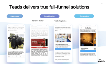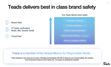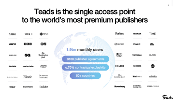 Kvalitní média chránící značku, naše úzké a exkluzivní partnerské vztahy s obsahovými poskytovateli a zavedení Teads CTV nás učinily omnichannelovou platformou a videovou silou, která nyní může zasáhnout spotřebitele kdykoliv a kdekoli na všech zařízeních.